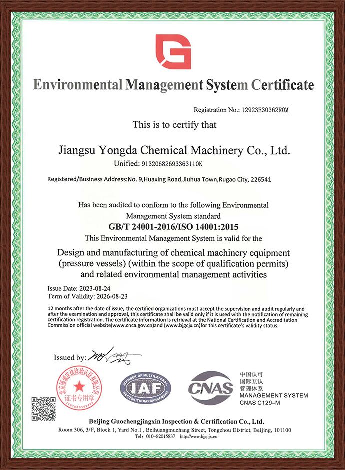 环境管理体系认证证书(英文) - 资质荣誉 - 江苏PA直营化工机械股份有限公司